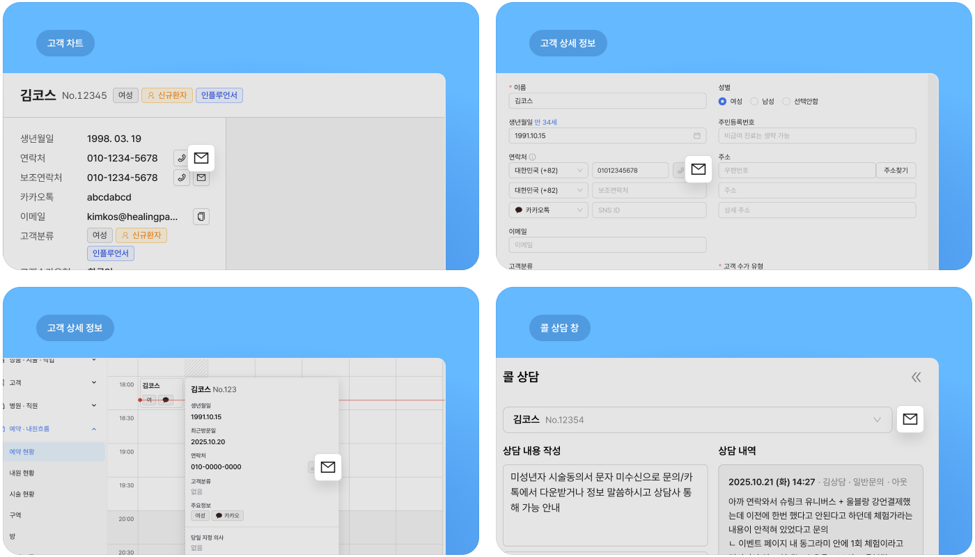 차트 왼쪽 → ‘고객 상세 정보 보기’ → 연락처 항목 옆 [메시지] 버튼