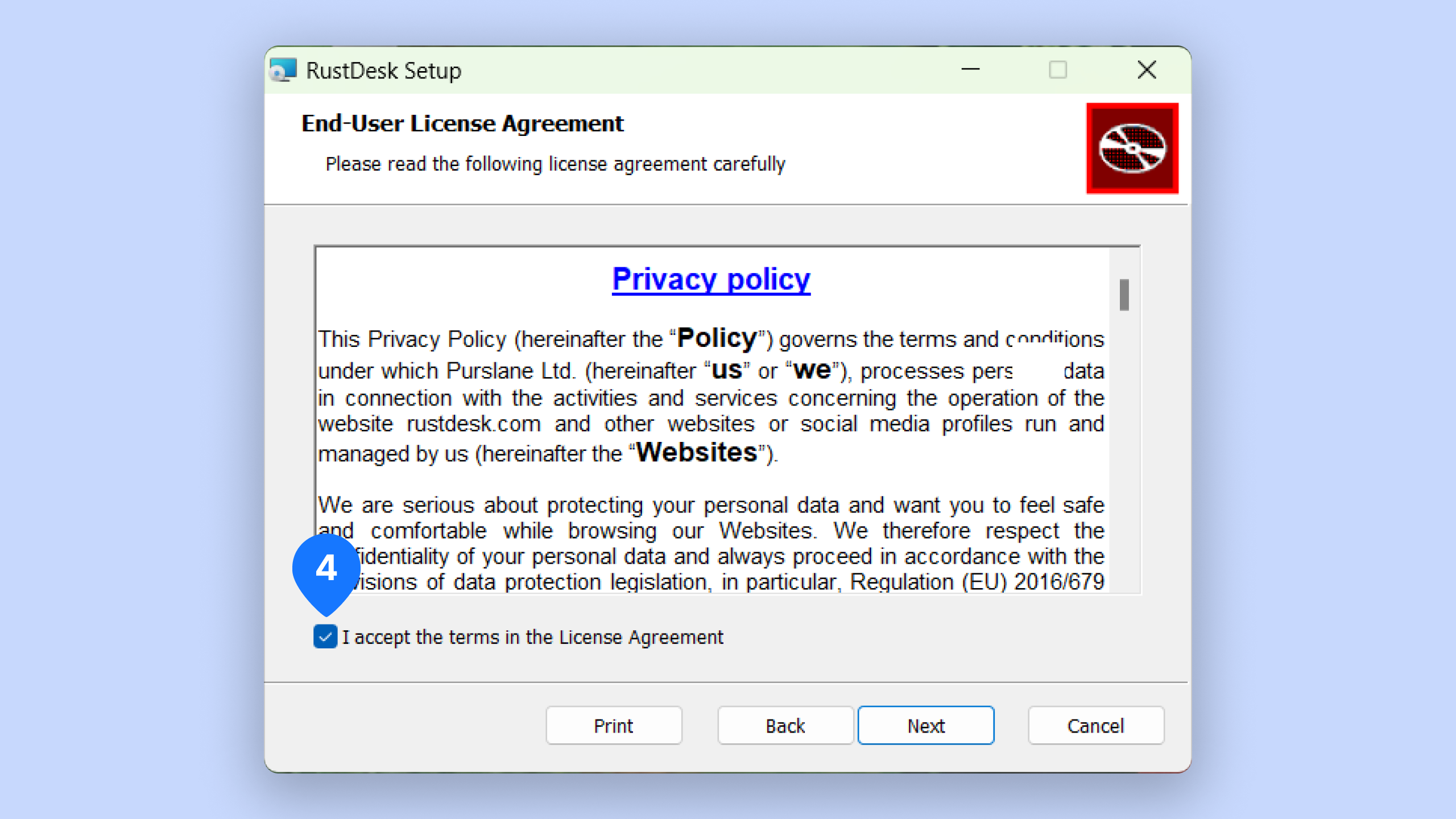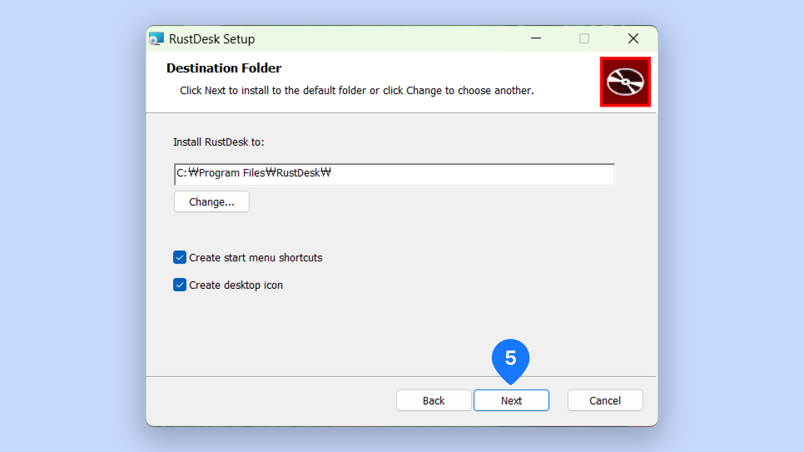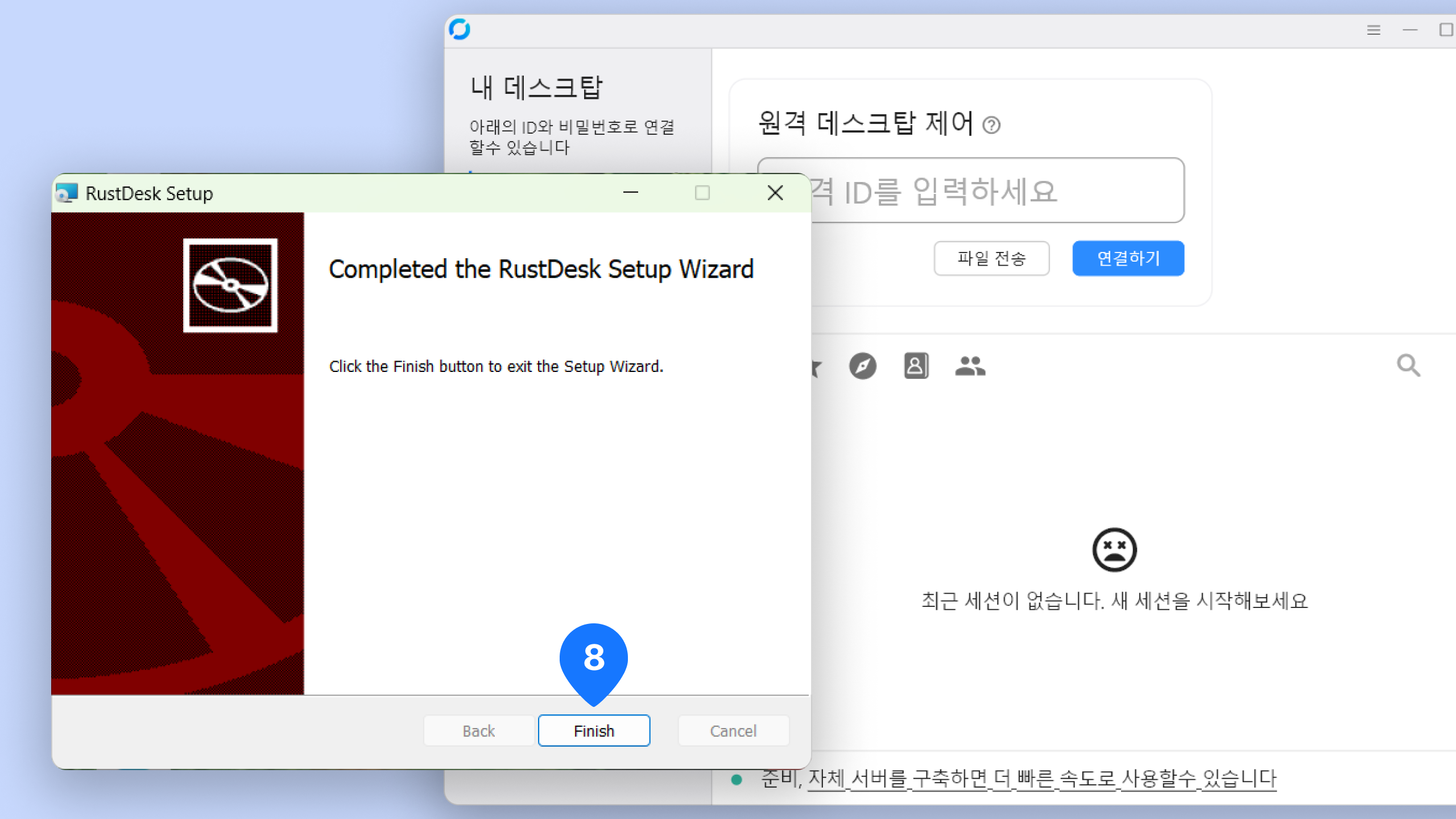설치가 완료되면, 자동으로 원격 지원 프로그램(Rustdesk)가 열립니다.
