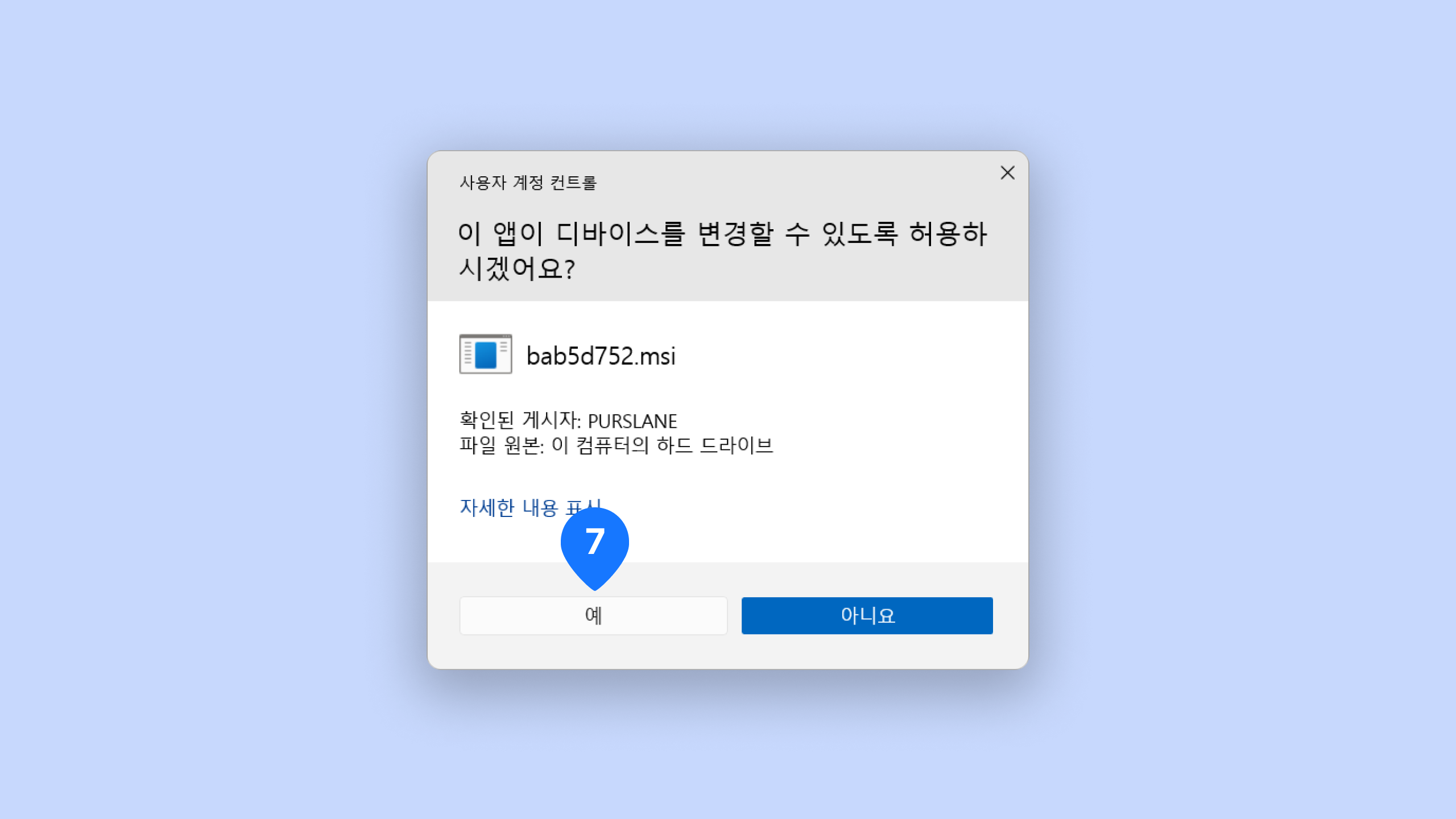 [사용자 권한 컨트롤] 화면에서 [예] 를 눌러주세요.