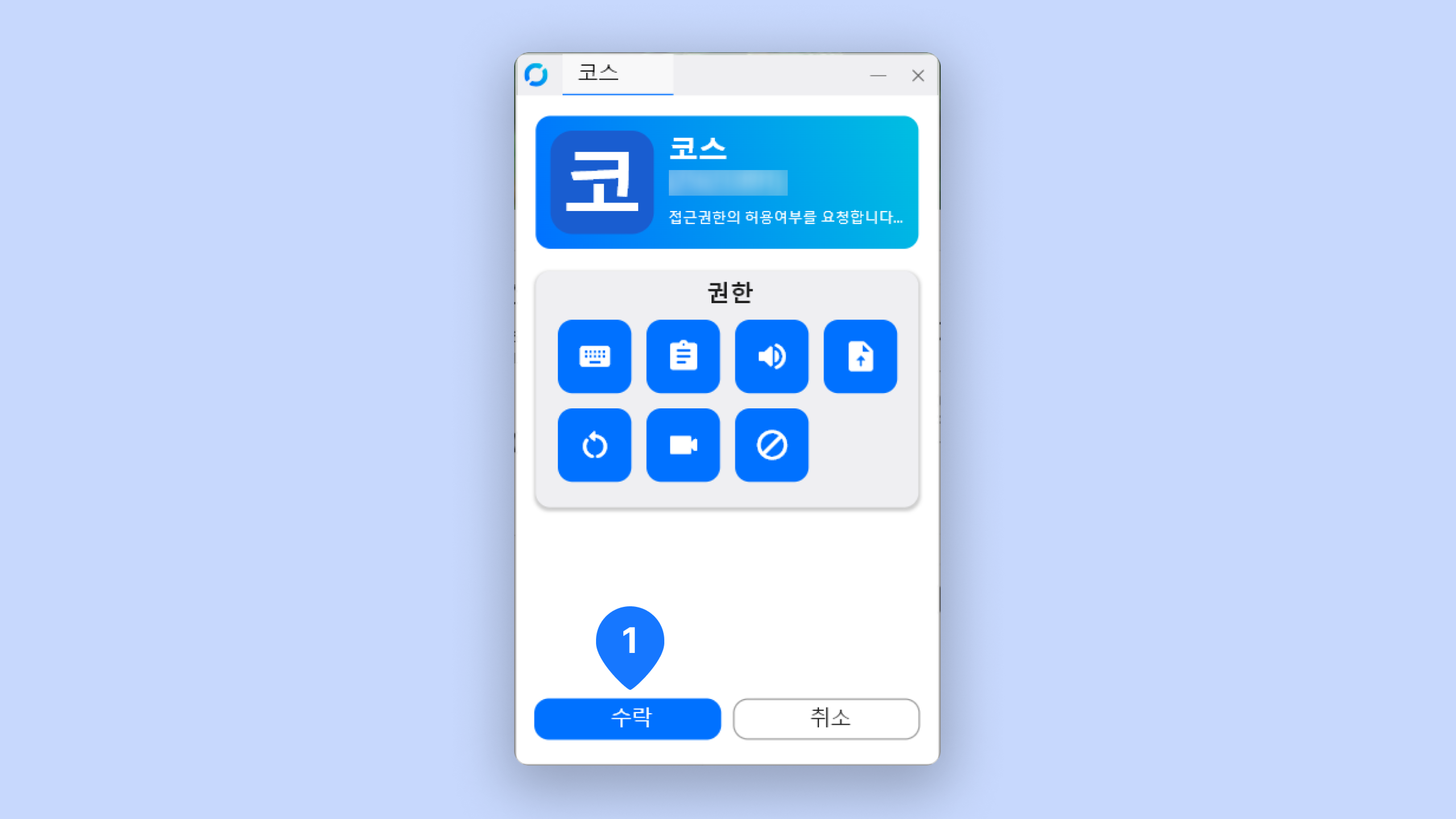 원격 연결 요청을 받은 뒤 열린 팝업에서, [수락]을 눌러주세요.