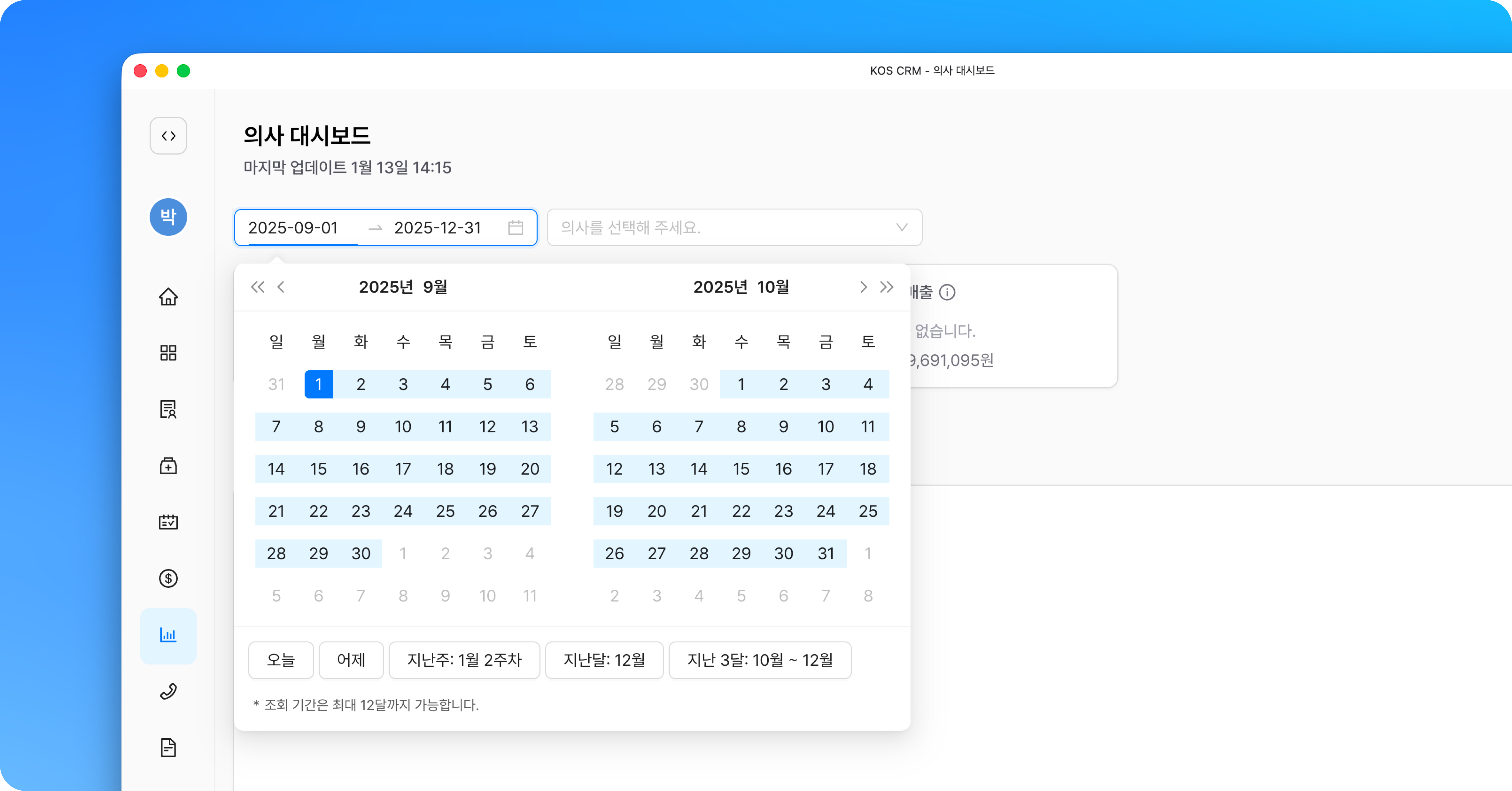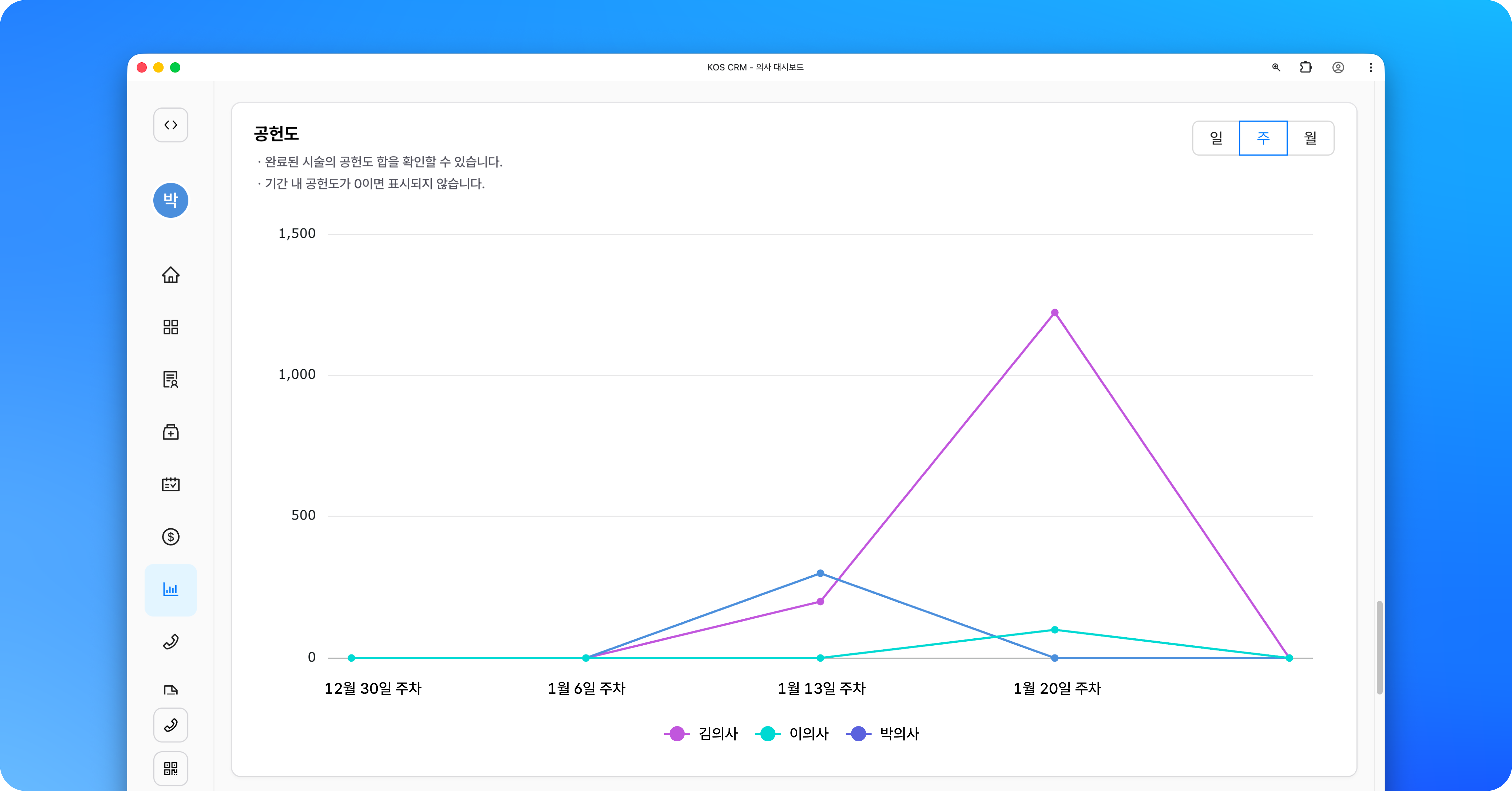왼쪽 메뉴에서 [통계]-[의사 대시보드]로 이동합니다.