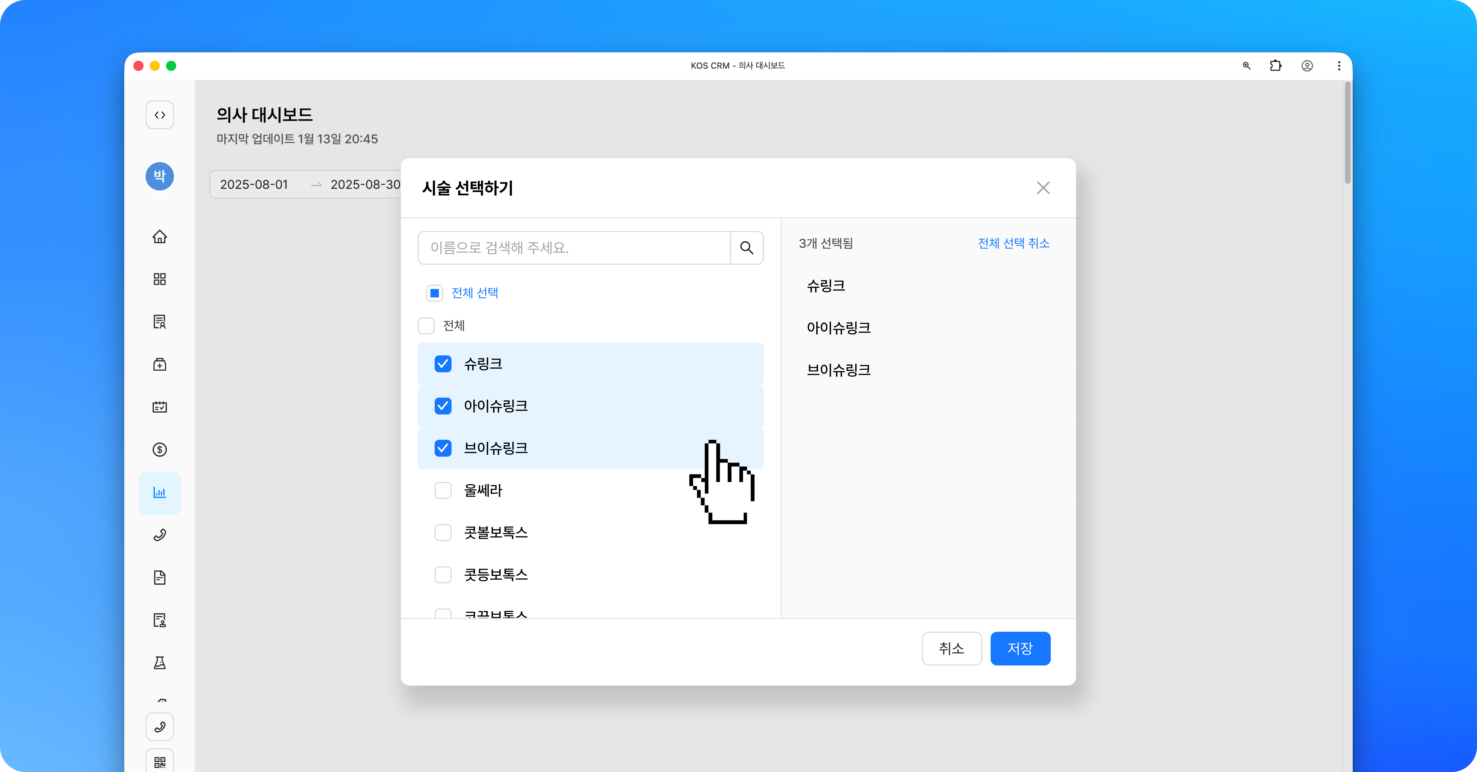 기간 내 시술 발생 수를 확인하고, 의사 별 진행 수를 확인합니다.