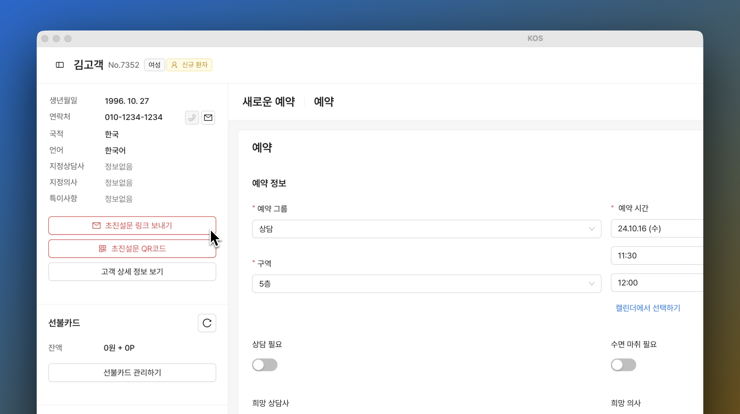 내원 시 고객 응대에 필요한 시간을 줄일 수 있고, 고객이 입력한 정보가 시스템에 자동으로 등록되어 추가 입력 작업이 필요 없습니다.