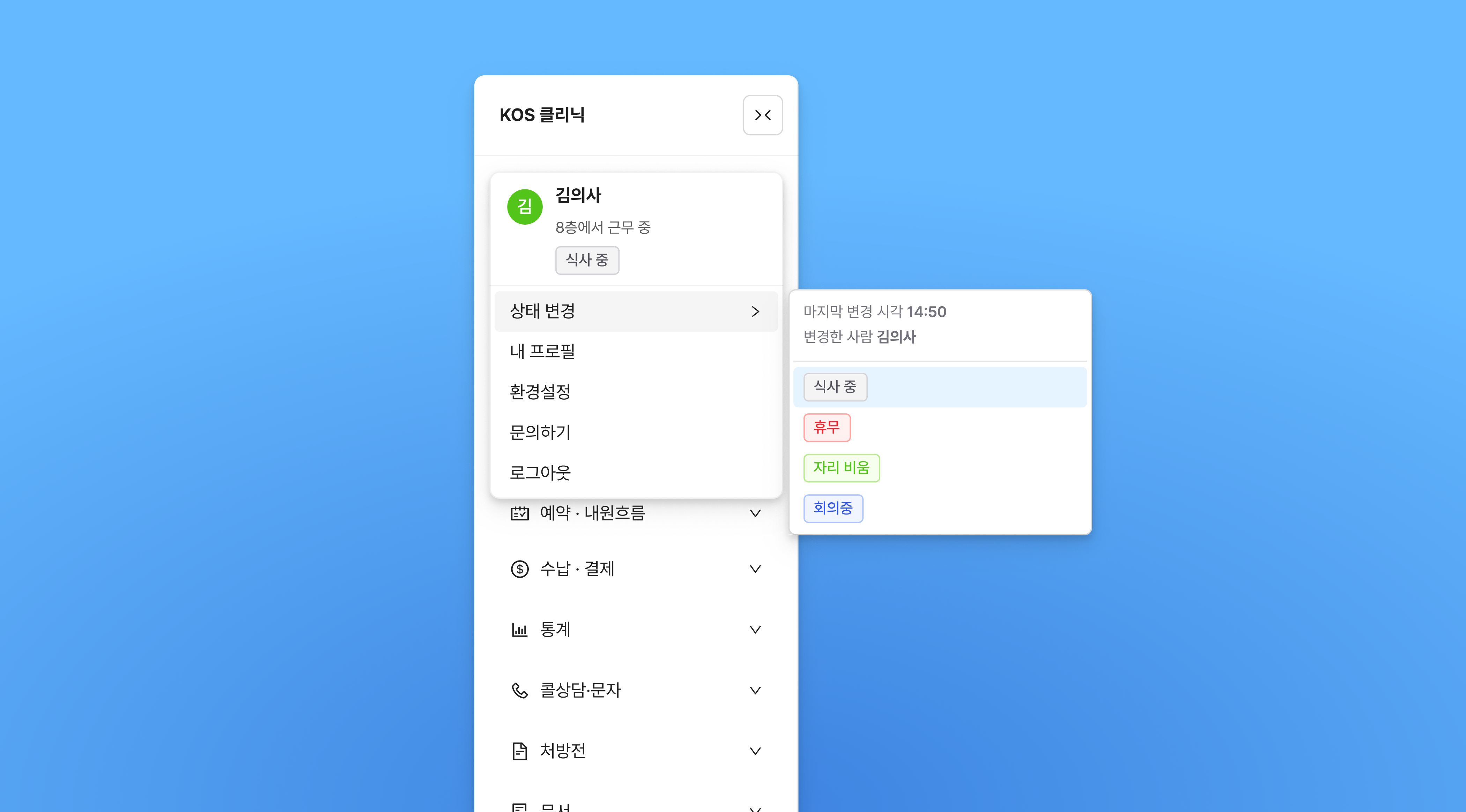 의사의 계정 '상태' 정보는 시술현황의 [의사별 보기] 또는 리소스 현황에서 확인할 수 있습니다.